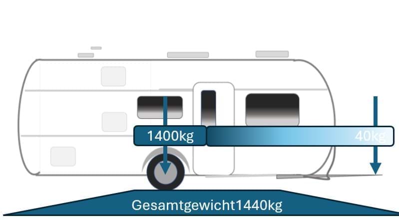 | Wohnwagen (kg) = Achsgewicht (kg) + Stützgewicht (kg) |
